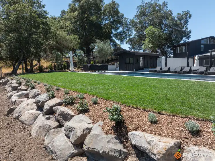 The backyard was further elevated with strategically placed stones along the garden edge, adding a natural and refined touch.