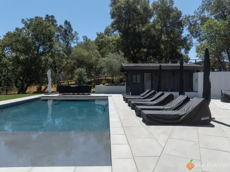- Elegant pavers and stone work for patio, pool, and pathways