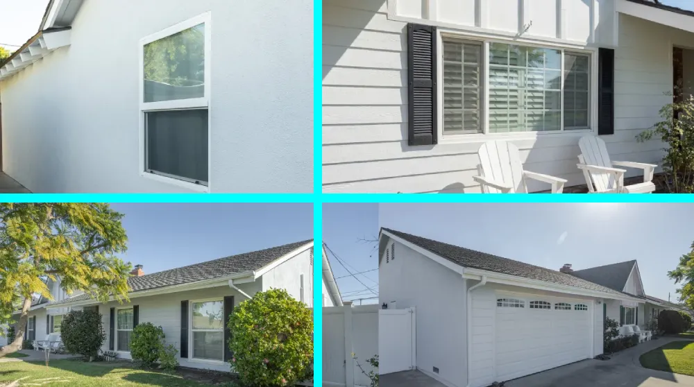 Recent exterior renovation project in Orange County showing a freshly painted white home from multiple exterior angles